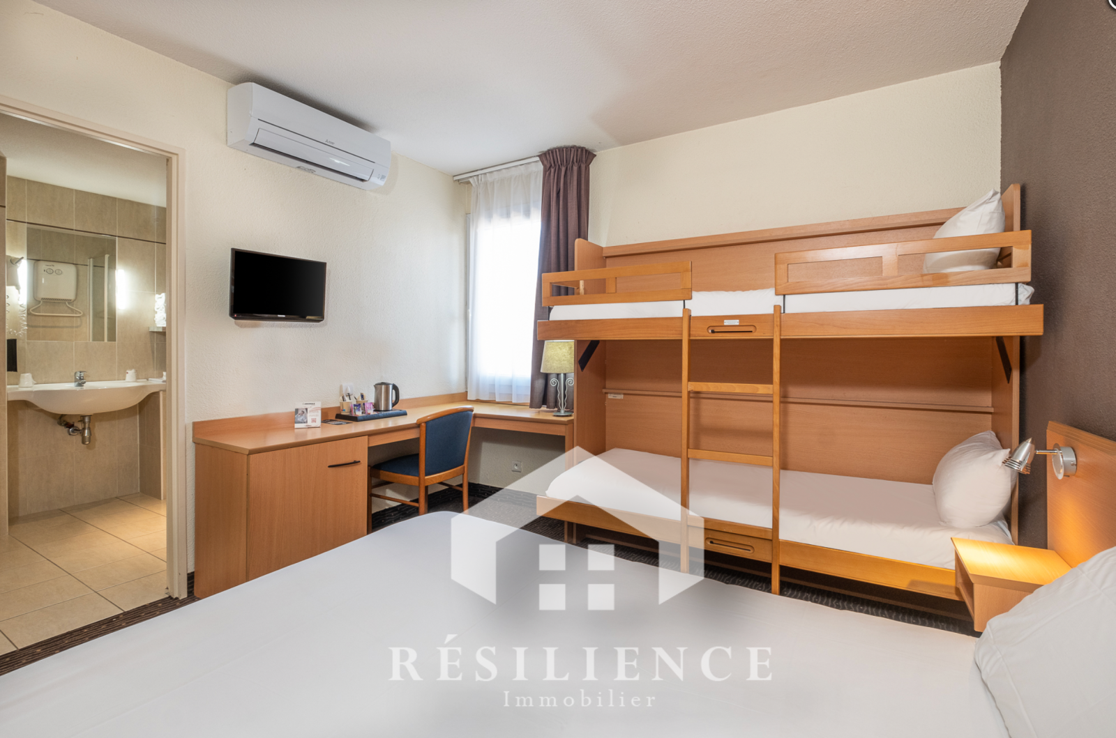 Établissement de 55 chambres + logement de fonction. Rénovations récentes dans les chambres et parties communes, climatisation installée dans l’ensemble des espaces. Salle de réunion pour 40 personnes. Possibilité d’activité de restauration avec cuisine équipée, non exploité actuellement. Borne de recharge électrique pour les véhicules client.