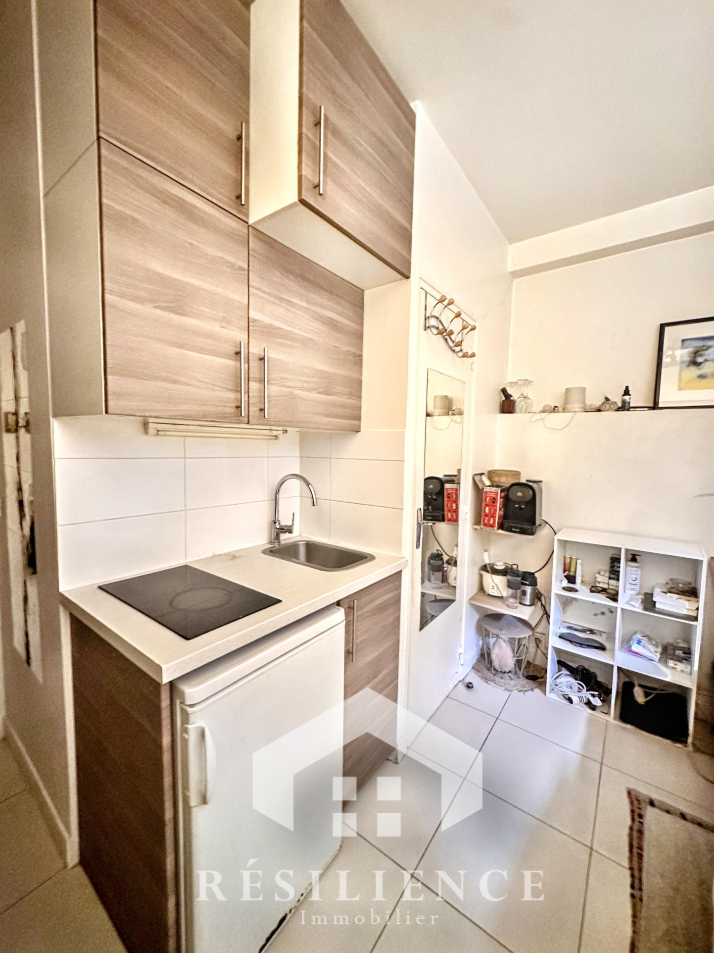 Situé dans une belle copropriété bien tenue avec gardien, cette ancienne chambre de bonne dispose d'une entrée, kitchenette récente et équipée. Salle d'eau avec wc.