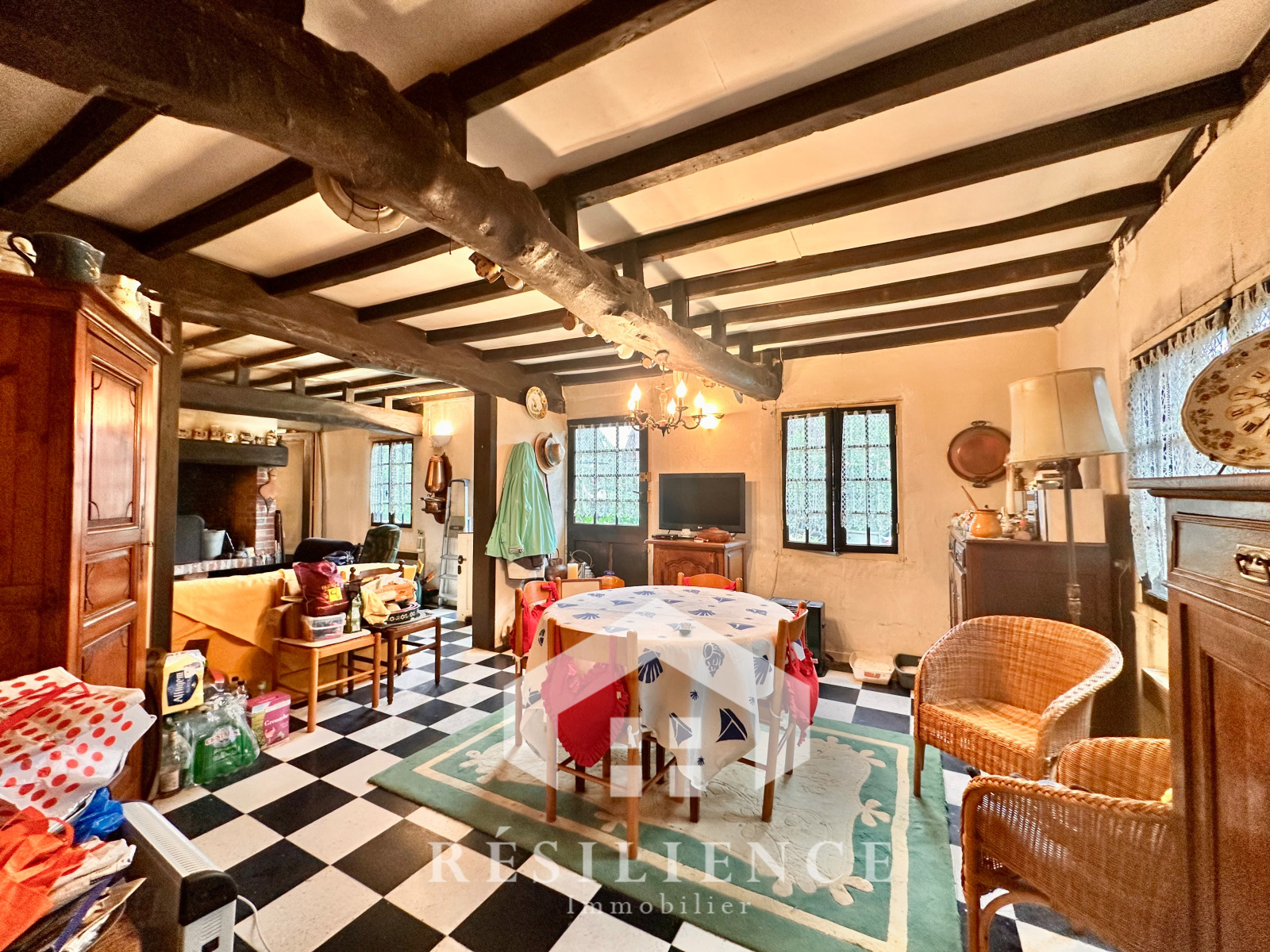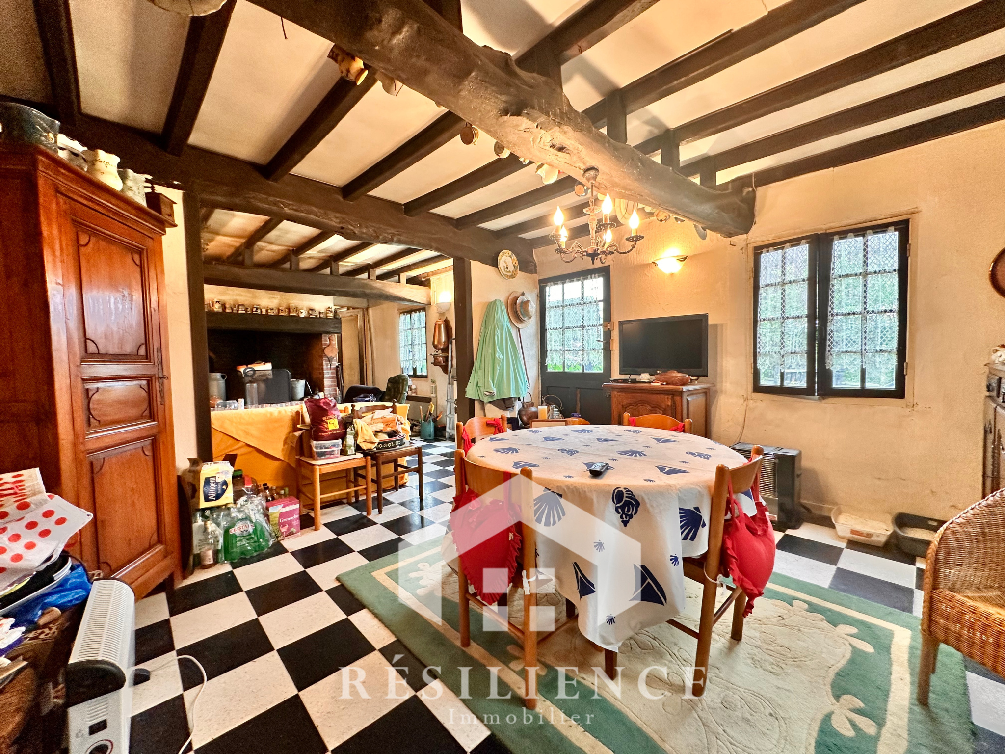 Nichée dans un environnement calme et verdoyant sur un beau jardin arboré, elle a conservé tout le cachet des maisons typiques de la région : colombages, poutres apparentes et volumes chaleureux.