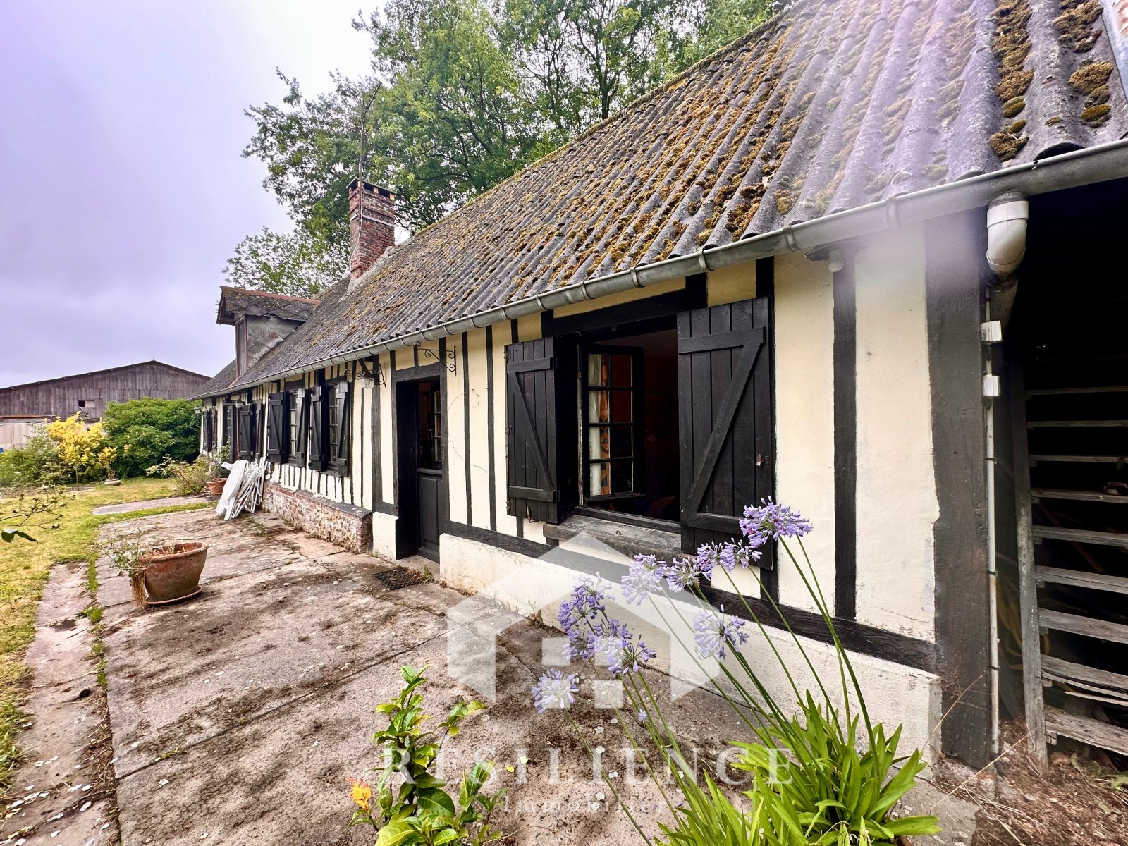 Canouville (76450)À seulement 2h30 de Paris (ou 1h40 depuis la gare Saint-Lazare) et 5 km des plages de Veulettes-sur-Mer, découvrez cette authentique maison normande à colombages pleine de charme, d’environ 80 m², sur un beau terrain arboré de 950 m².