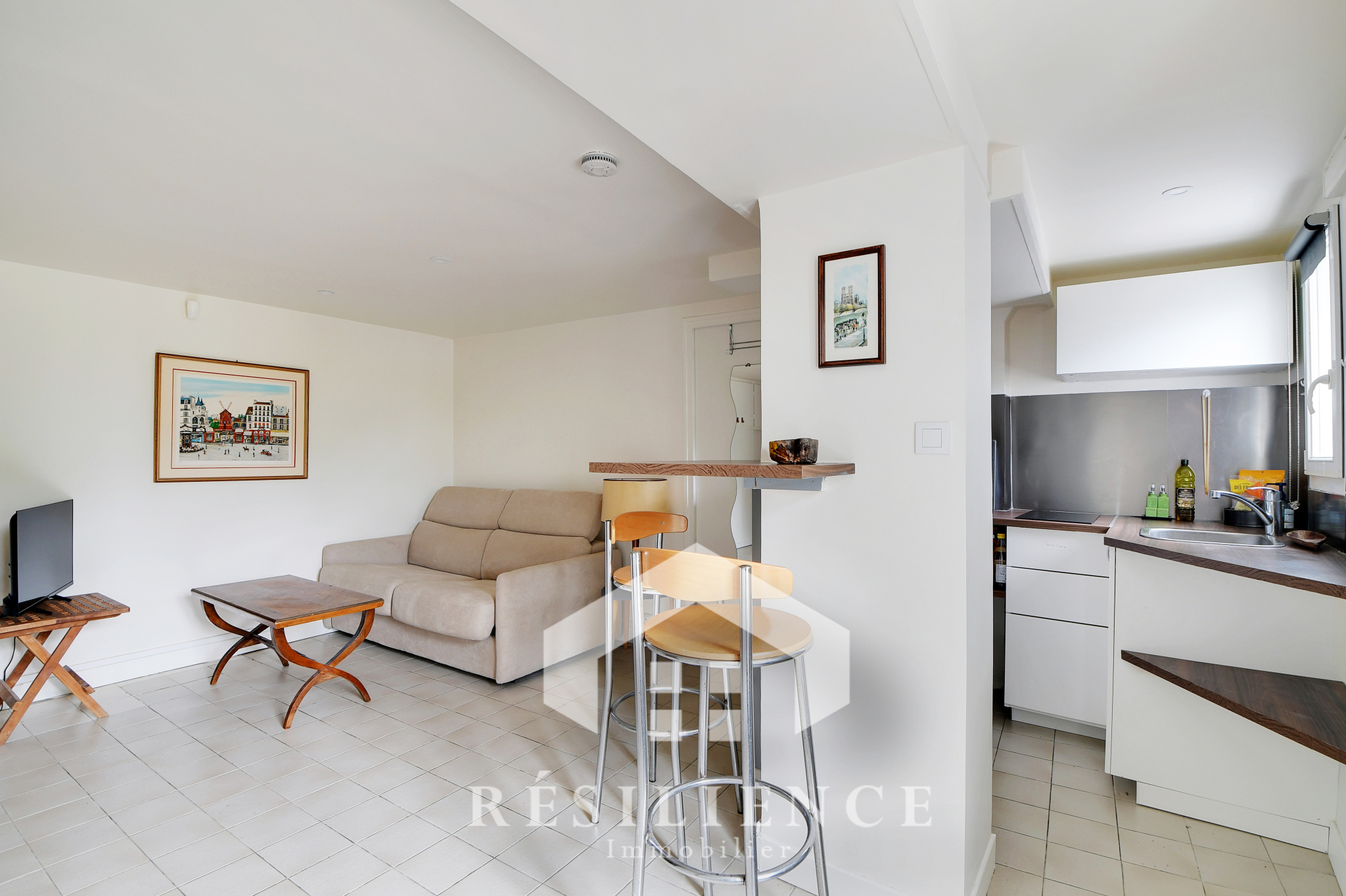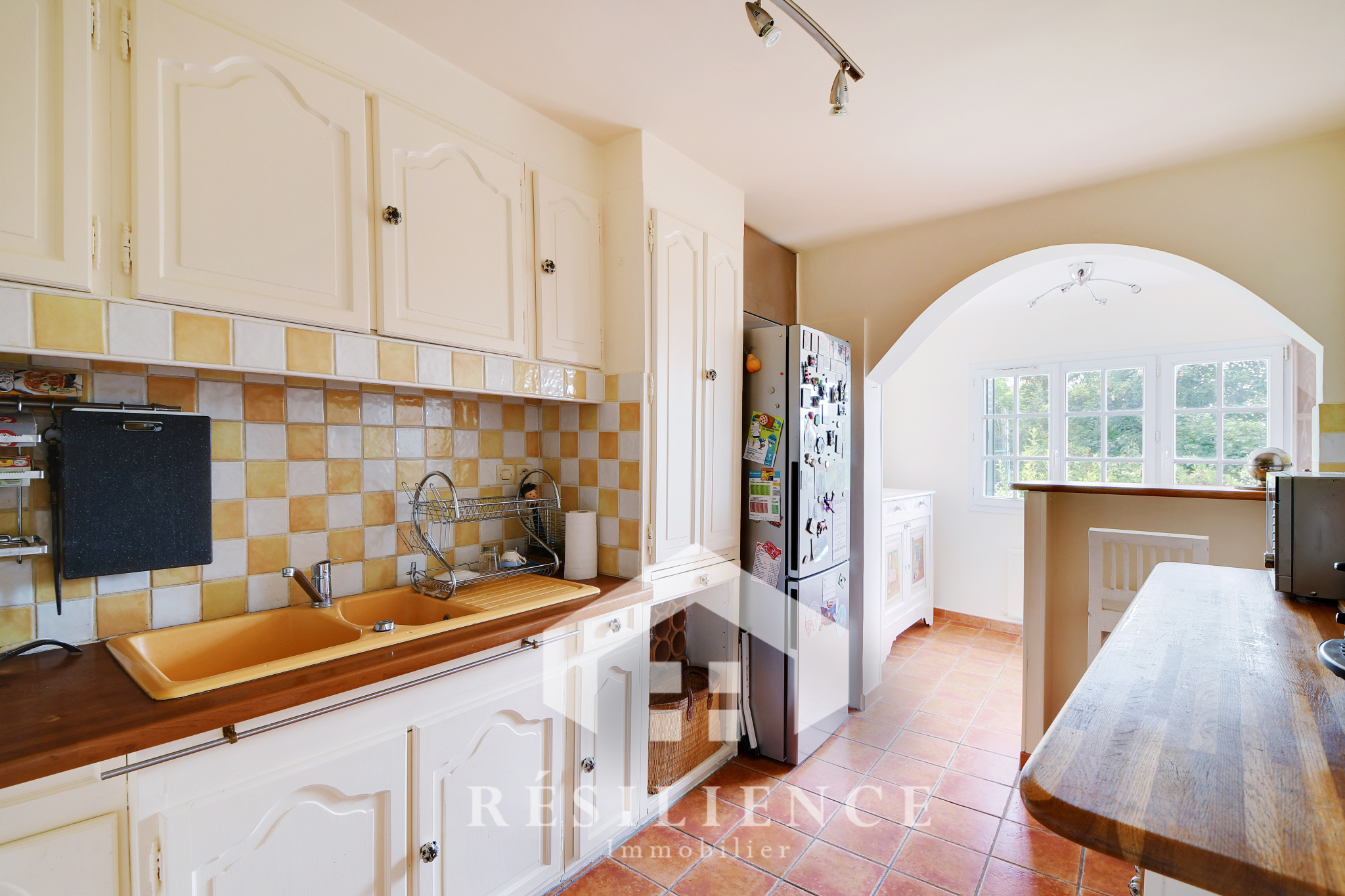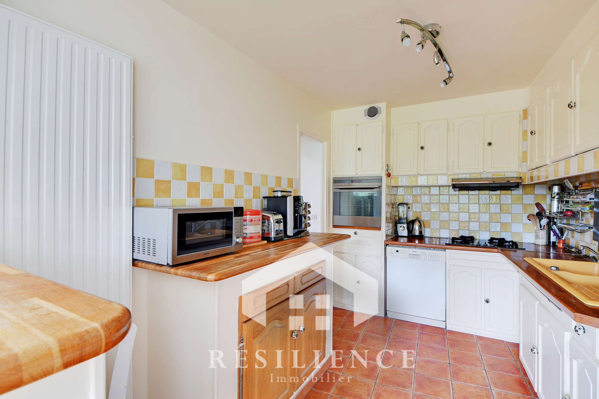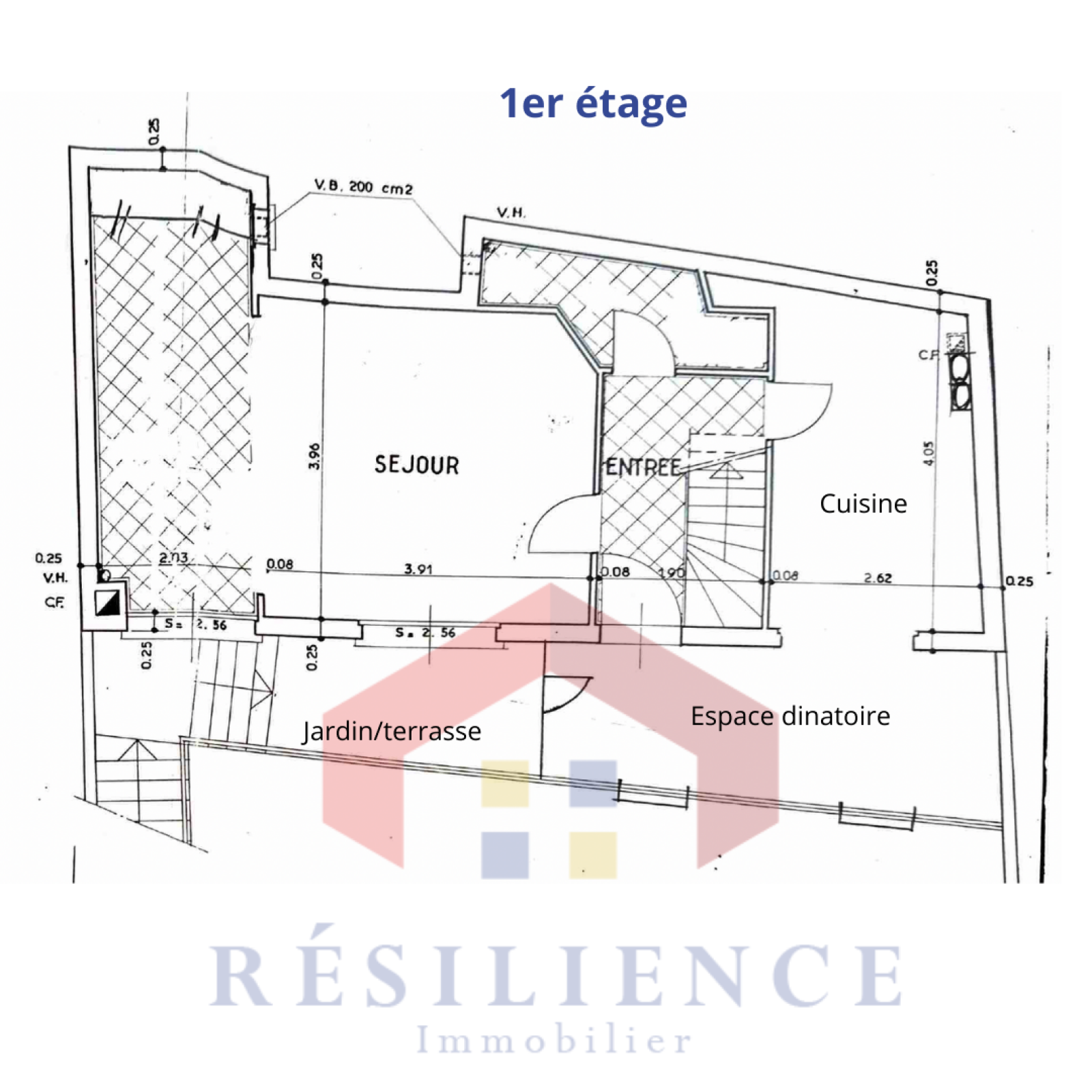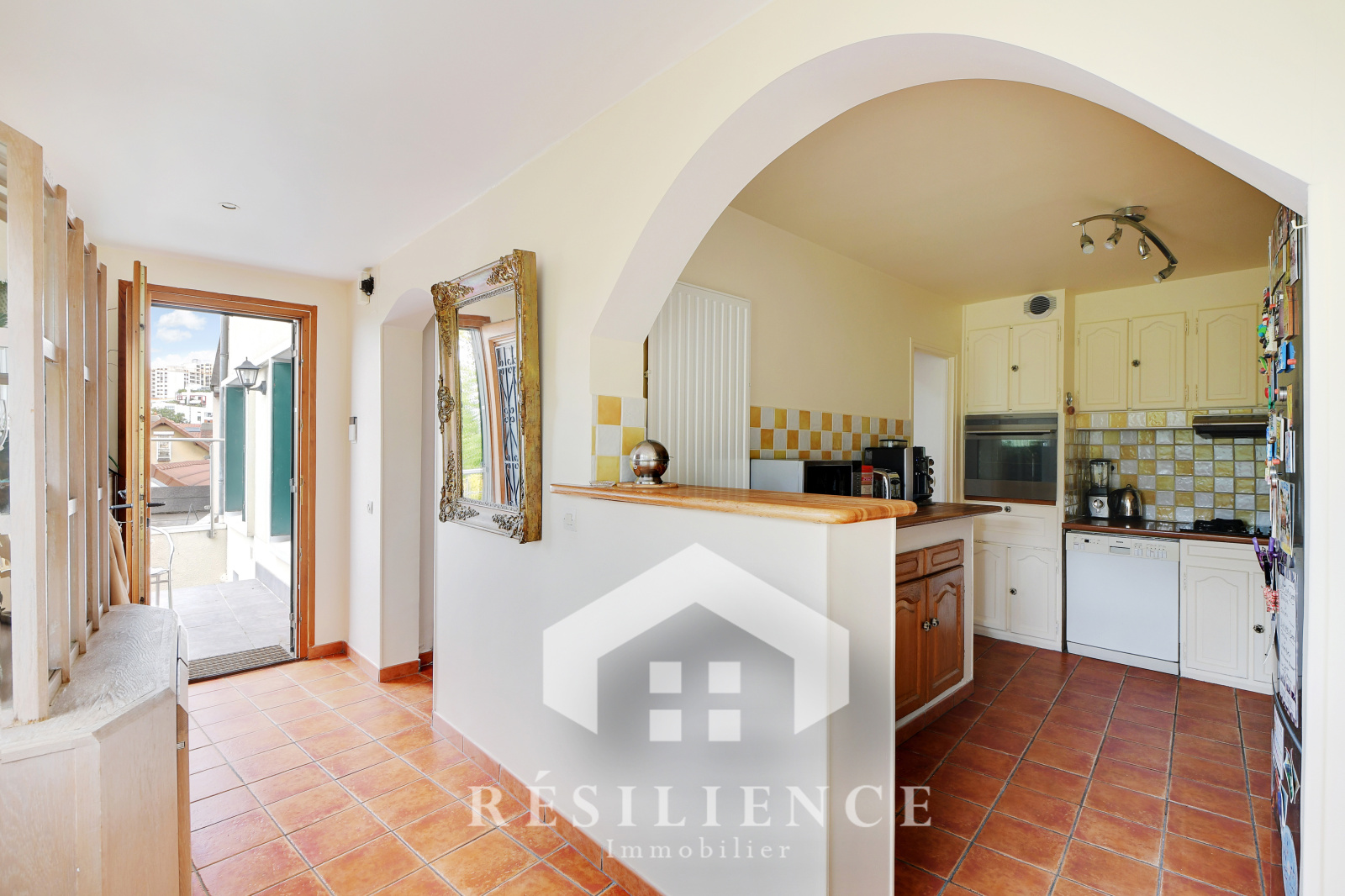 1er étage : une entrée avec terrasse, un séjour lumineux de 25 m² sans vis-à-vis offrant une superbe vue dégagée, une cuisine séparée et dinatoire, WC.