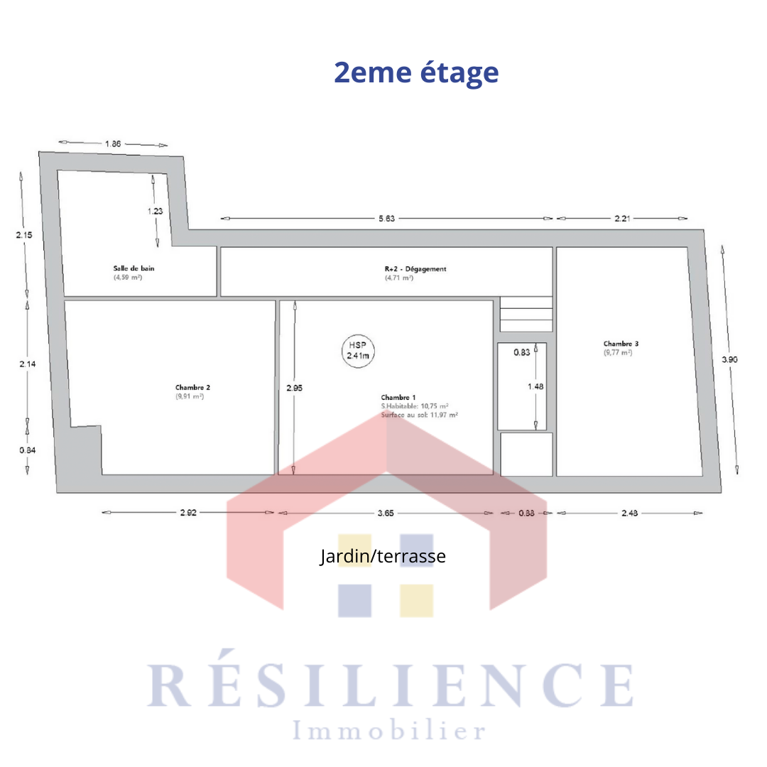2e étage : trois chambres (11 m², 10 m² et 10 m²), une salle de bains avec WC de 5m2. Les combles sont accessibles et offrent un espace de rangement supplémentaire.